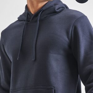 Product Details Navy blue solid sweatshirt has a hooded, 2 kangaroo pocket pockets, long sleeves, closure, straight hem Size &