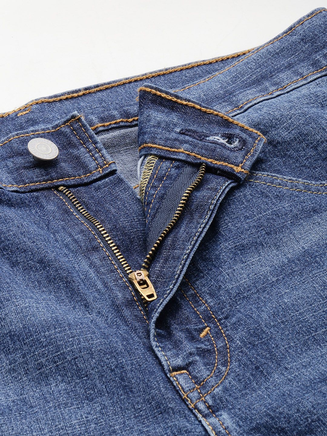 - Medium shade, light fade blue jeans