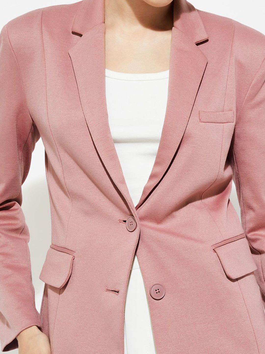 Pink solid regular-fit casual blazer, has a notched lapel, long sleeves, single-breasted with button closure